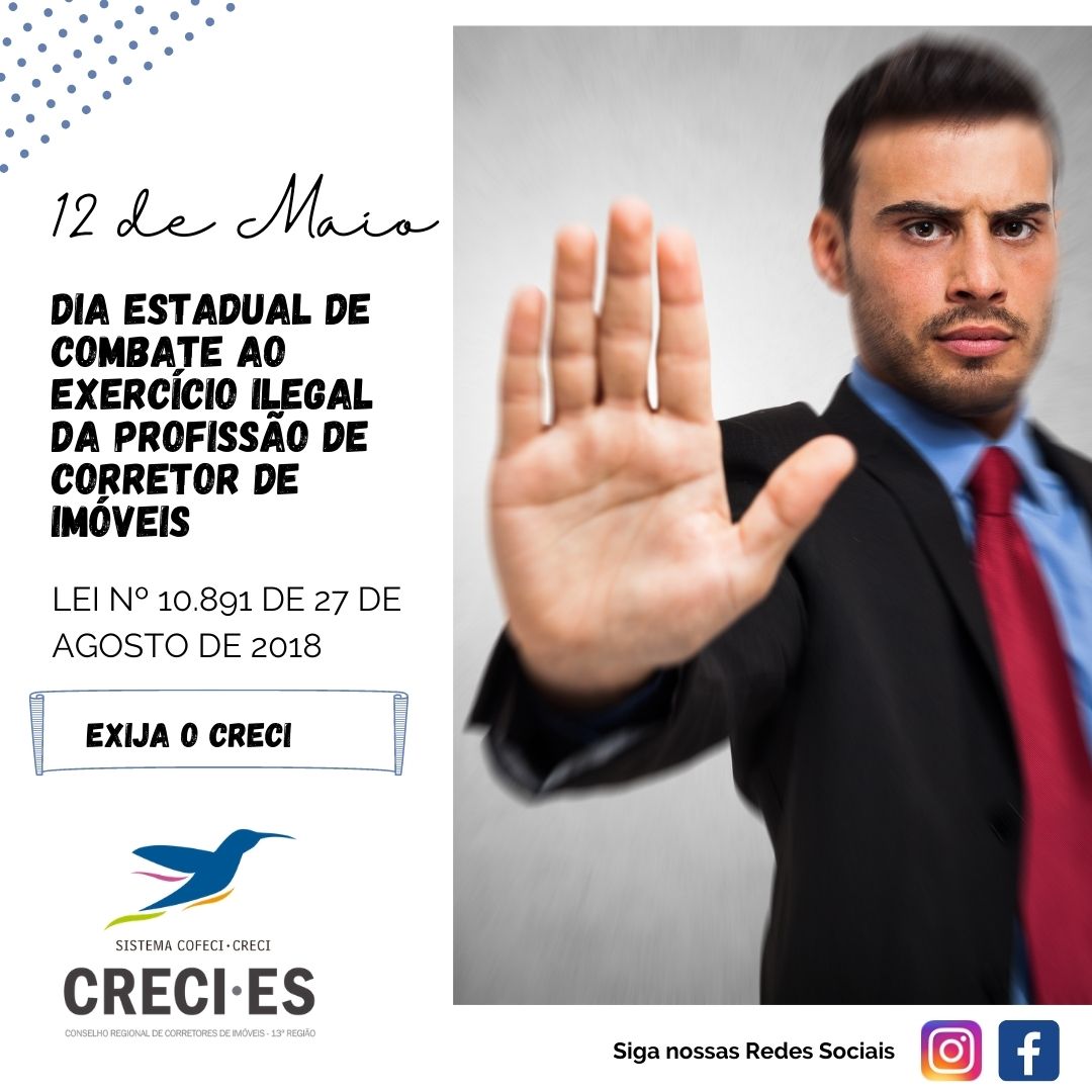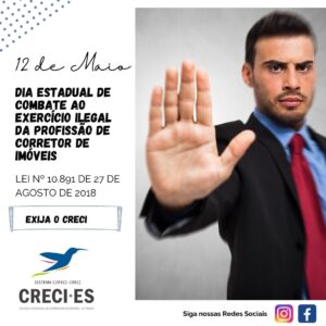 O Dia Estadual de Combate ao Exercício Ilegal da Profissão de Corretor de Imóveis tem como finalidade conscientizar a população da importância em contratar profissionais qualificados e comprometidos com uma profissão tão grandiosa para o desenvolvimento socioeconômico do Estado e do país.