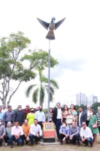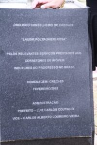 Agora, quem passar pelo município de Aracruz, no entorno da antiga “Praça da Paz”, atual Praça “Prefeito Heraldo Barbosa Musso”, poderá contemplar o belíssimo monumento que é o Obelisco Colibri , inaugurado no último dia 18/02 com o nome de Colibri “Corretor Laudir Poltronieri Rosa”. O homenageado, faleceu o ano passado de COVID, e foi lembrado pelo presidente do CRECI-ES devido aos relevantes serviços prestados à categoria dos corretores de imóveis. Suas filhas e neta estiveram presentes, e se emocionaram com a homenagem recebida do CRECI-ES.
