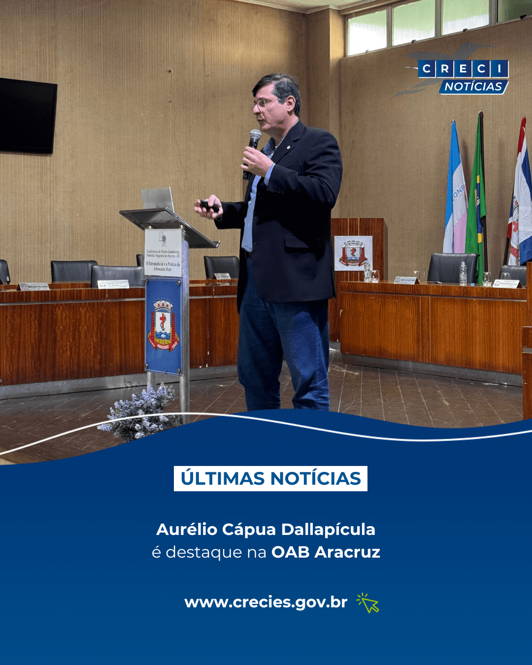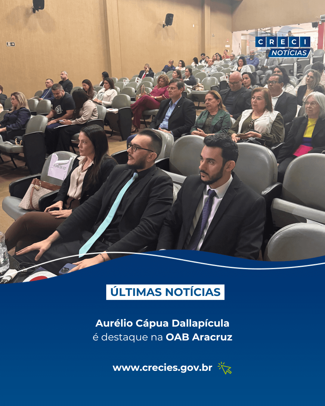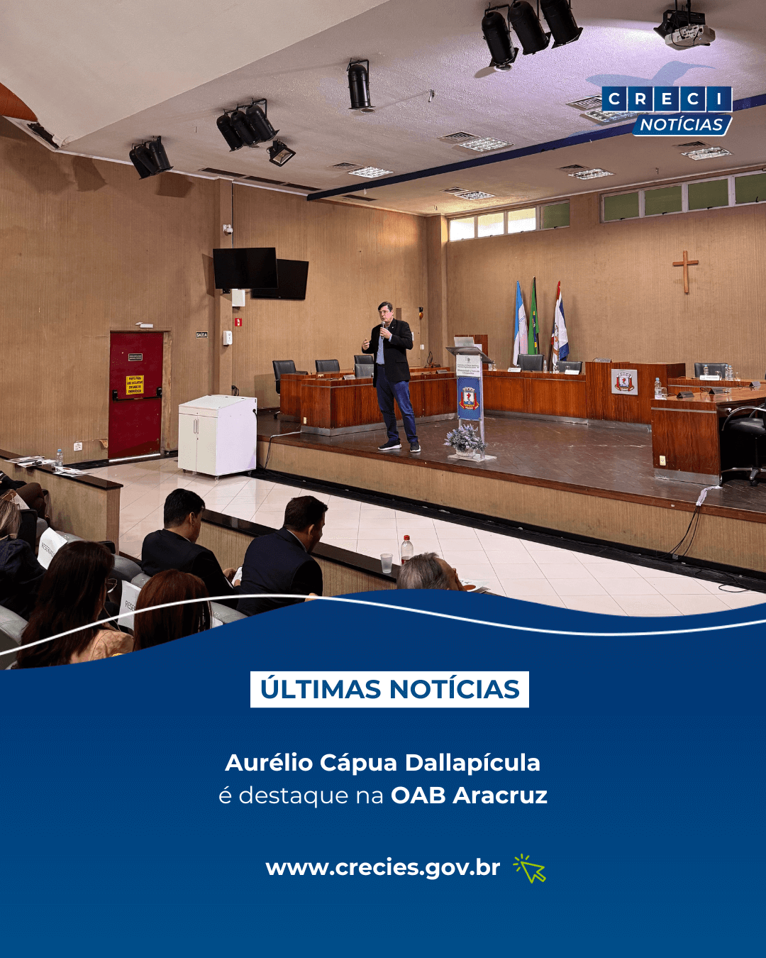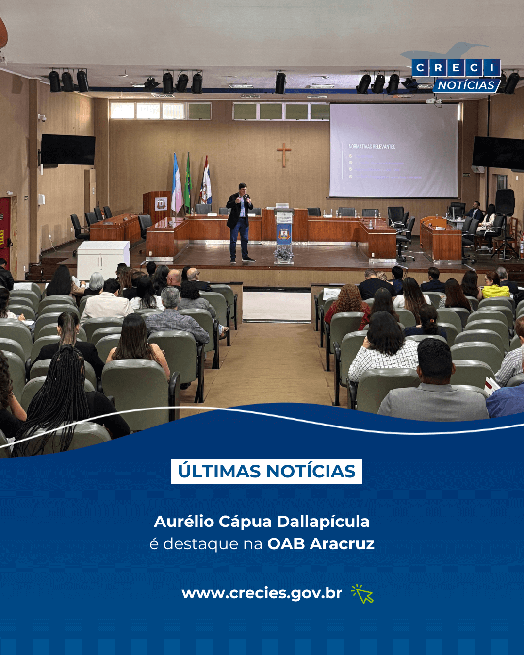 Na manhã desta terça-feira (17), a Câmara de Vereadores de Aracruz recebeu um ciclo de palestras como parte da programação do congresso jurídico promovido pela OAB Aracruz. Entre os destaques, esteve a participação de Aurélio Cápua Dallapícula, com reflexões sobre segurança jurídica e inovação no mercado imobiliário capixaba.