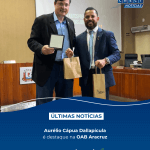 Ao final, Aurélio Cápua Dallapícula recebeu uma comenda simbólica pela sua participação, em agradecimento à sua contribuição para o evento e para o fortalecimento do debate no setor.