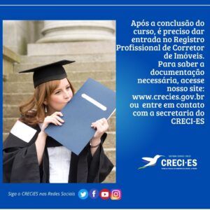 É somente neste momento que o Corretor de Imóveis poderá intermediar negociações imobiliárias e exercer a profissão legalmente. Poderá também se qualificar para novas especialidades, só disponíveis para corretores como por exemplo a Avaliação Técnica de Imóveis.