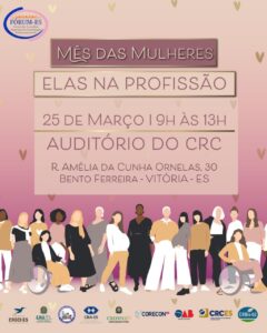 É amanha (25) , a partir das 9h, no auditório do CRC, o evento “Elas na Profissão”.