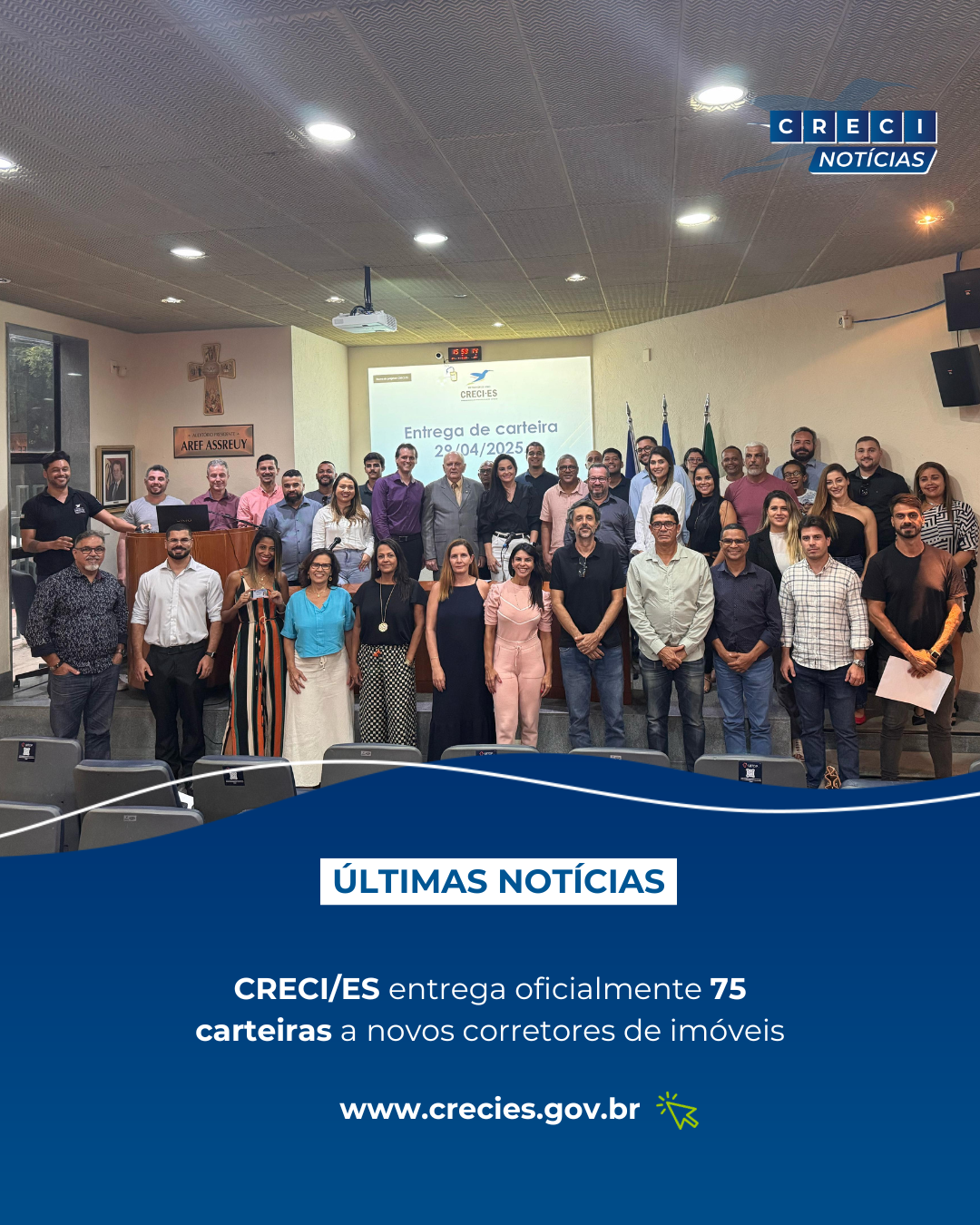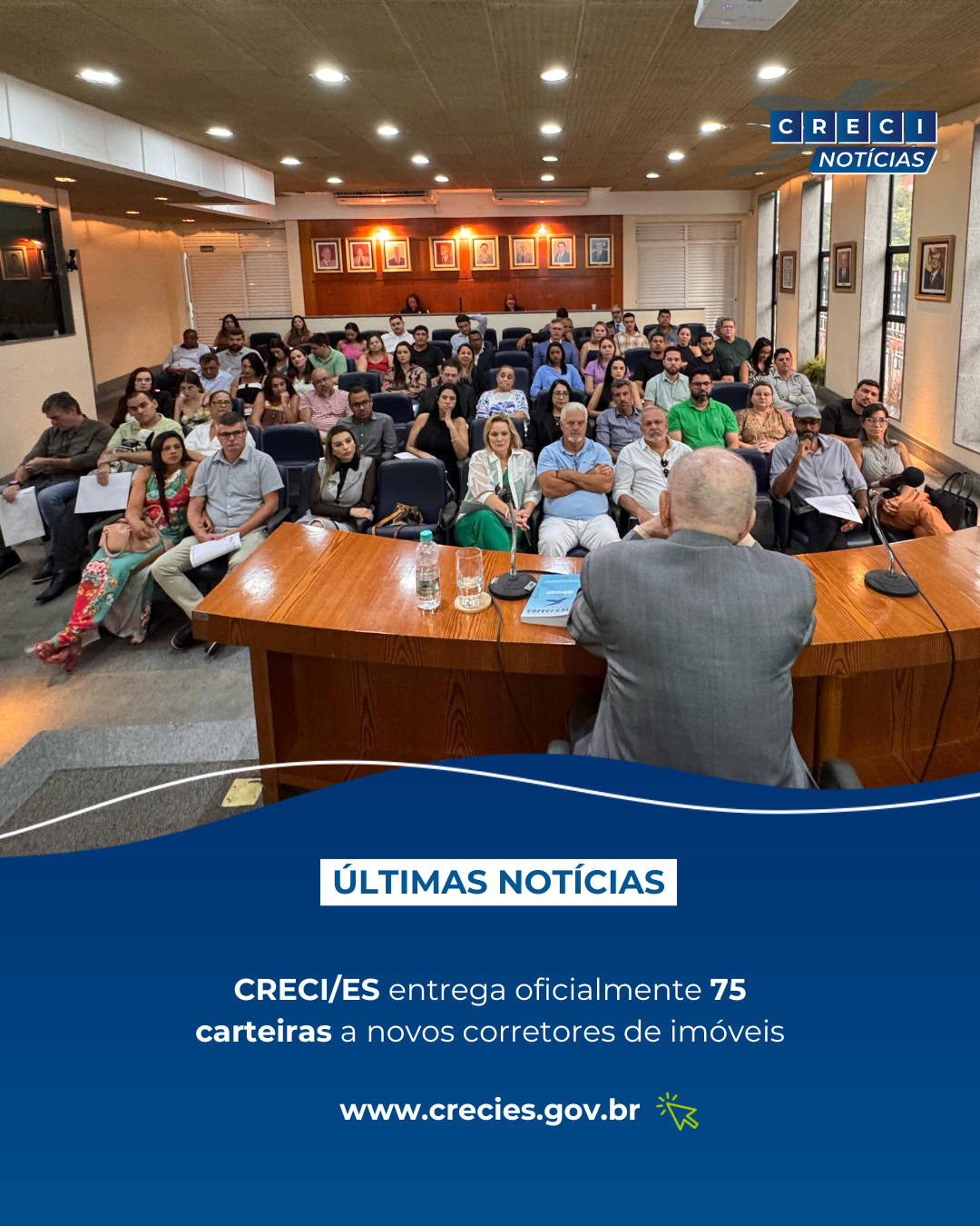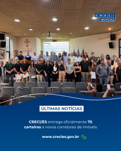 Na cerimônia, foram entregues 75 carteiras aos novos corretores, agora oficialmente credenciados para atuar no mercado imobiliário capixaba. Pela manhã, foram entregues 36 credenciais e, à tarde, mais 39 corretores receberam suas carteiras.