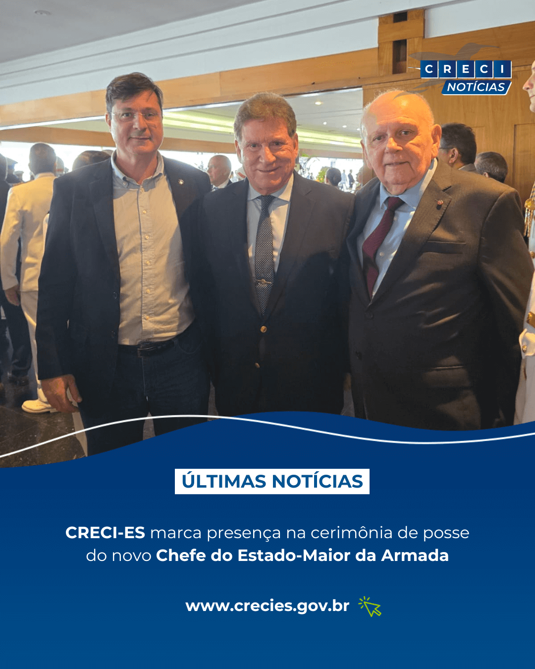A presença do CRECI-ES reafirma o respeito da entidade. Honramos as instituições que compõem o Estado brasileiro. Além disso, destacamos o papel estratégico da Marinha, porque ela atua na proteção e desenvolvimento do litoral capixaba. E seu trabalho se estende ao país como um todo, ou seja, é abrangente. Então, o reconhecimento de seu papel é fundamental. Acreditamos firmemente na força e na integridade das instituições.