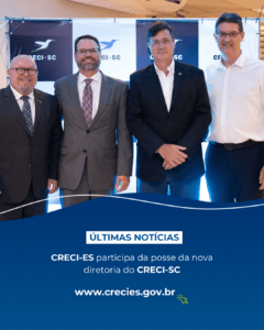 Na última terça-feira (25), ocorreu a solenidade de posse da nova diretoria do Conselho Regional de Corretores de Imóveis de Santa Catarina (CRECI-SC). O evento reuniu diversas autoridades do setor imobiliário e presidentes de alguns regionais do Brasil, incluindo o presidente do CRECI-ES, Aurélio Capua Dallapícula, que esteve presente na cerimônia.