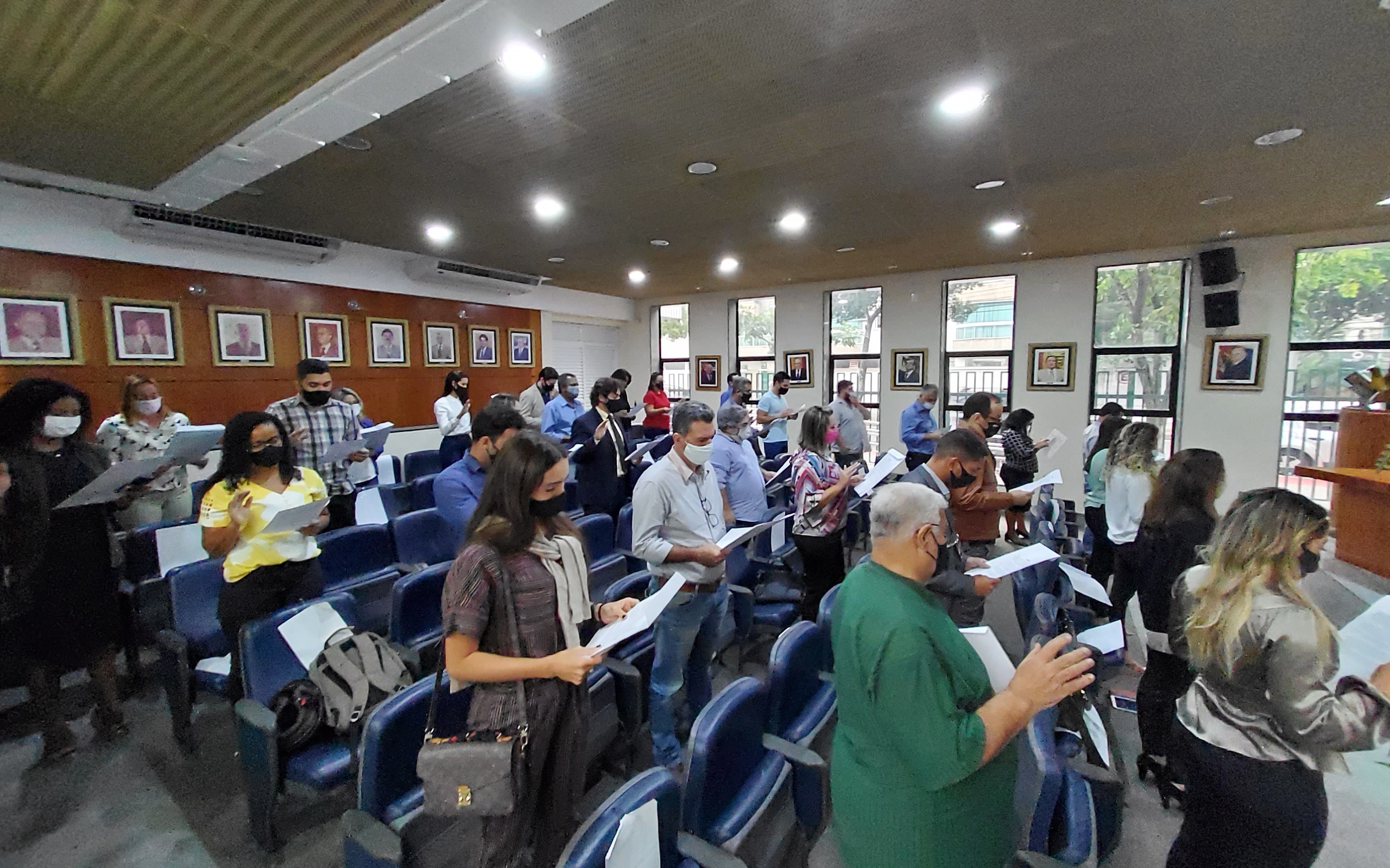 Os corretores realizaram o juramento à profissão, e na ocasião, também foram repassadas as responsabilidades dos corretores para com os seus clientes e reforçada a parceria com o CRECI para esclarecimentos e suporte às dúvidas.