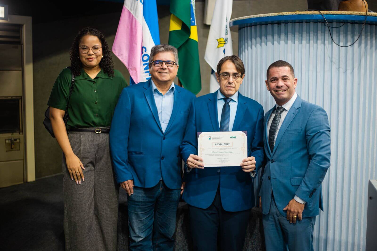 O Presidente Interventor do CRECI/ES, Manoel Dias, recebeu a honraria que ressaltou sua dedicação, compromisso e contribuição marcante para o aprimoramento do setor no estado. A solenidade também contou com a presença de Ary Barbosa ( Corretor de Imóveis) e Heloísa Ribeiro, servidora do setor de secretaria do órgão, entre outras autoridades.