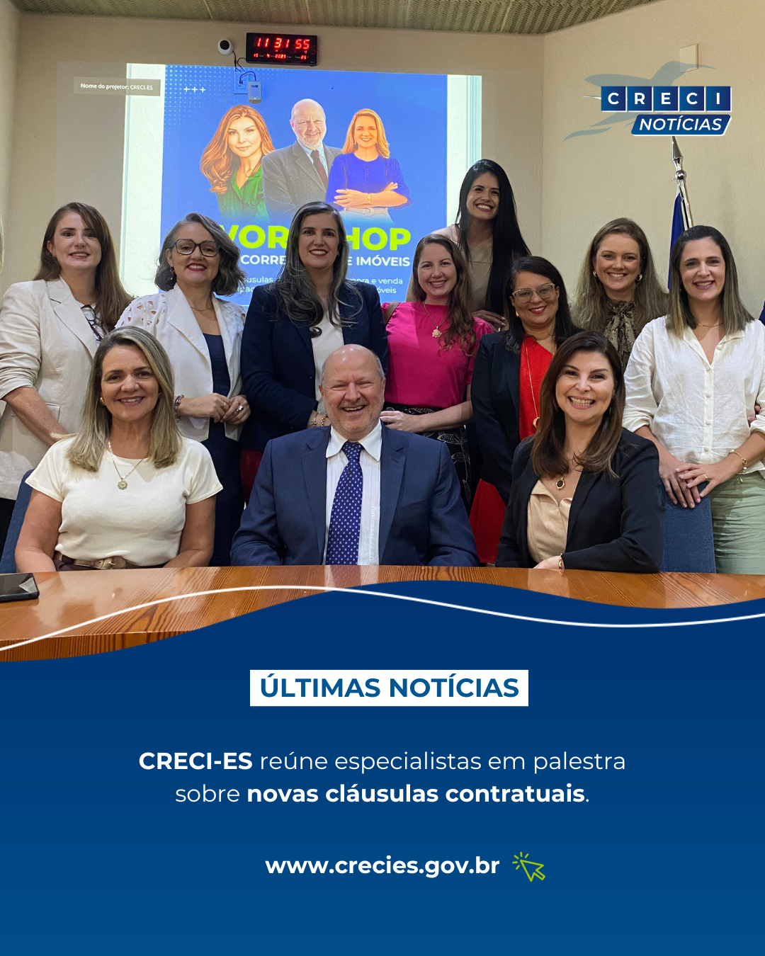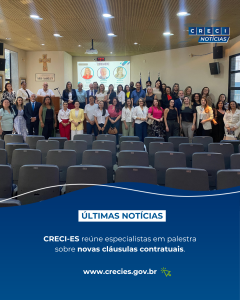 Nesta terça-feira (15), o auditório do CRECI-ES recebeu um público de mais de 60 pessoas, incluindo conselheiros da instituição, para a palestra “Novas cláusulas do contrato de compra e venda e o impacto na rotina do Corretor de Imóveis”.