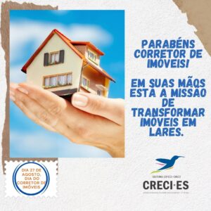 Parabéns a todos os “Colibris” – é assim que chamo, neste momento, todos os Corretores de Imóveis – pela busca incansável de satisfazer suas necessidades pessoais e, ao mesmo tempo, realizar os sonhos da sociedade na conquista da sua moradia ou investimentos imobiliários.