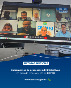Nesta quinta-feira (24) o Conselho Regional de Corretores de Imóveis do Espírito Santo (CRECI-ES) tem se destacado por sua participação ativa e comprometida nos julgamentos de processos administrativos em grau de recurso realizados pelo Conselho Federal (COFECI). Mesmo à distância, a atuação do regional capixaba tem sido firme e constante, com representantes acompanhando as sessões de forma virtual, garantindo a defesa técnica e a transparência dos procedimentos.