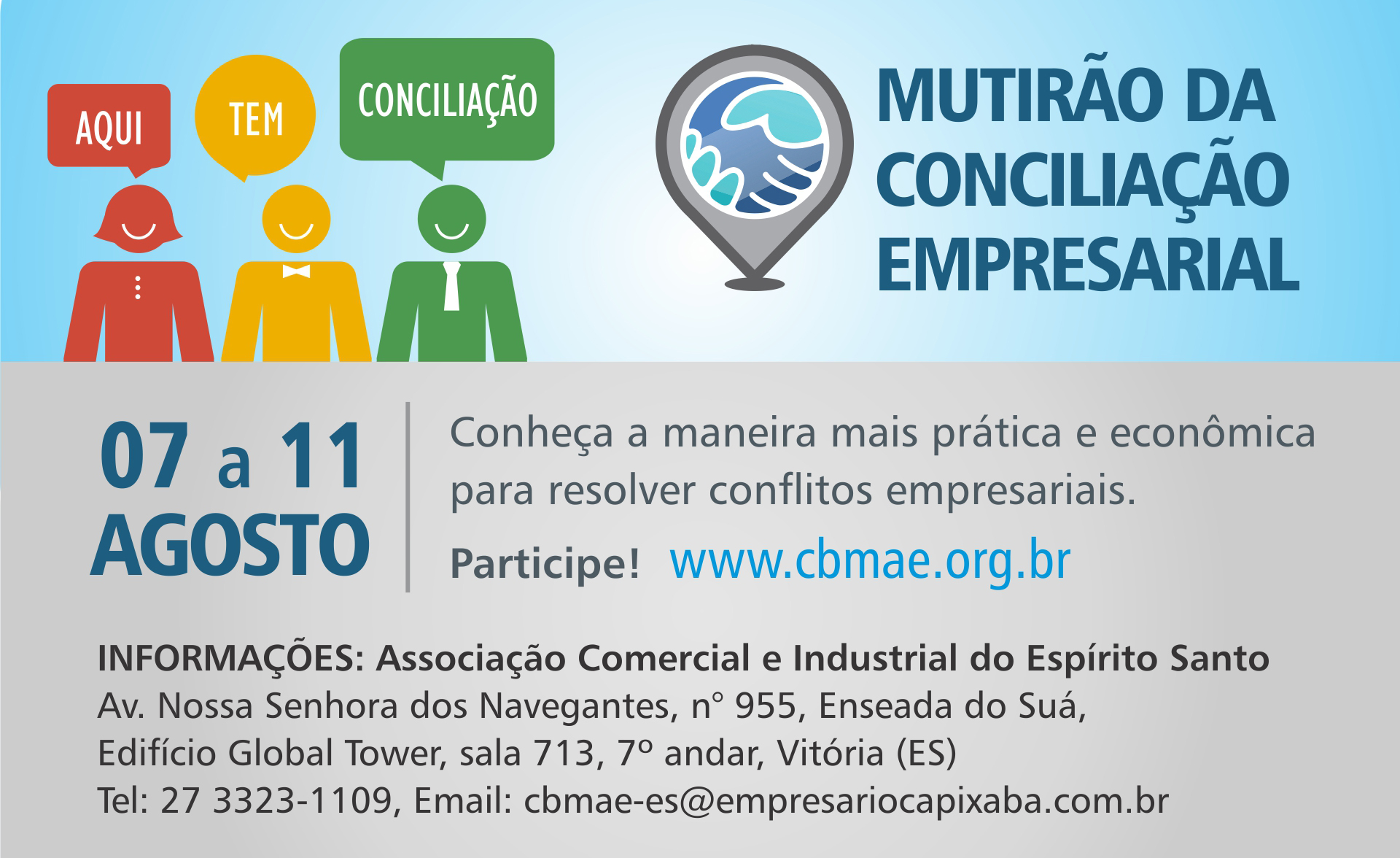 Entre os dias 7 e 11 de agosto, a Confederação das Associações Comerciais e Empresariais do Brasil (CACB), por meio de sua Câmara Brasileira de Mediação e Arbitragem Empresarial (CBMAE), promoverá, em nível nacional, o 8º Mutirão da Conciliação Empresarial. O objetivo é permitir que empresas busquem solucionar conflitos com fornecedores ou clientes sem a necessidade de recorrerem ao Judiciário e de forma mais ágil e mais barata.