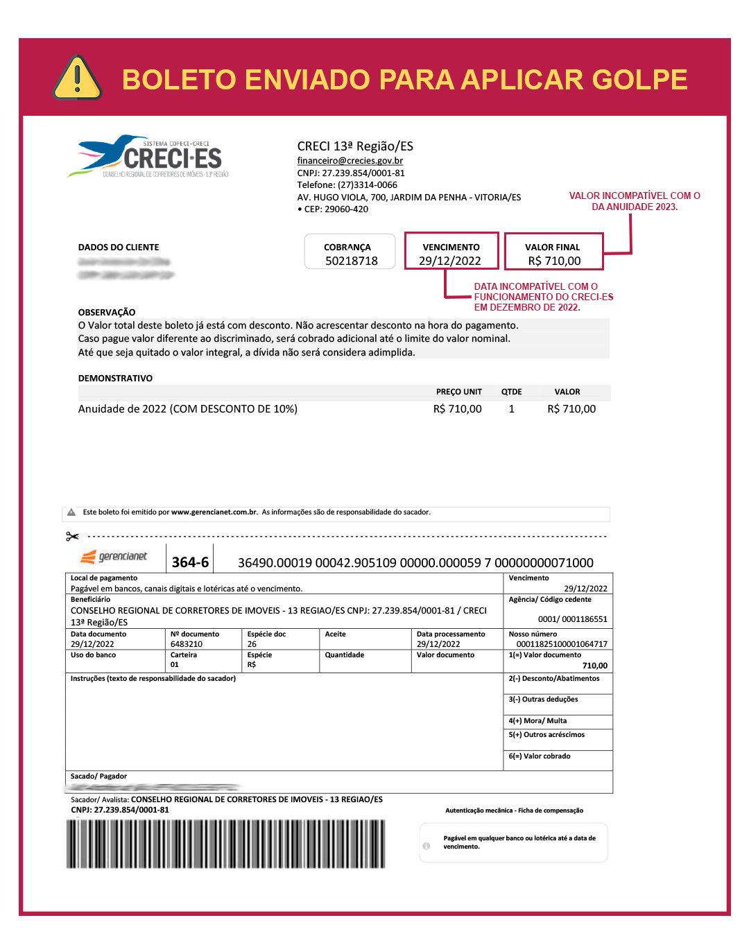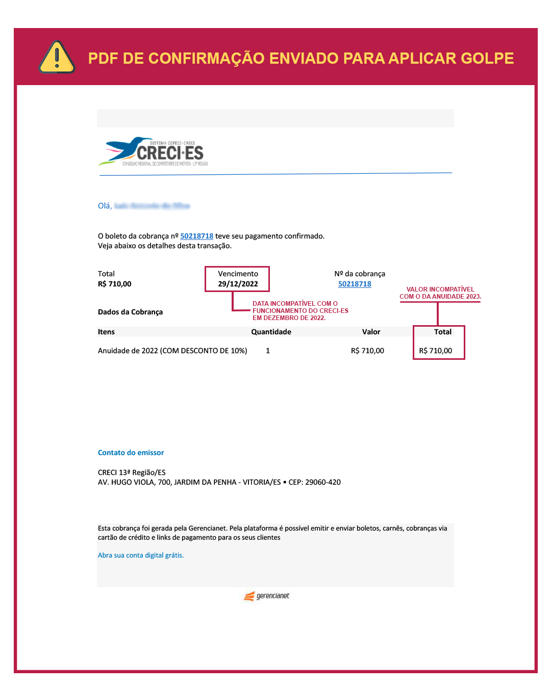 Corretor, o CRECI-ES divulga anualmente alertas sobre fraudes, e principalmente nos meses que antecedem o pagamento da anuidade e outras responsabilidades que o profissional possui com o Regional.