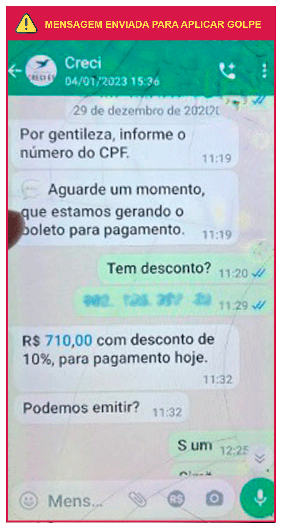 – O CRECI-ES envia mensagem de cobrança ou boletos via WhatsApp?