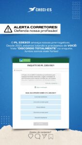 Atualmente, há um movimento significativo de corretores de imóveis votando para derrubar esta proposta. Precisamos unir forças para assegurar que nossa voz seja ouvida e nossa profissão protegida.
